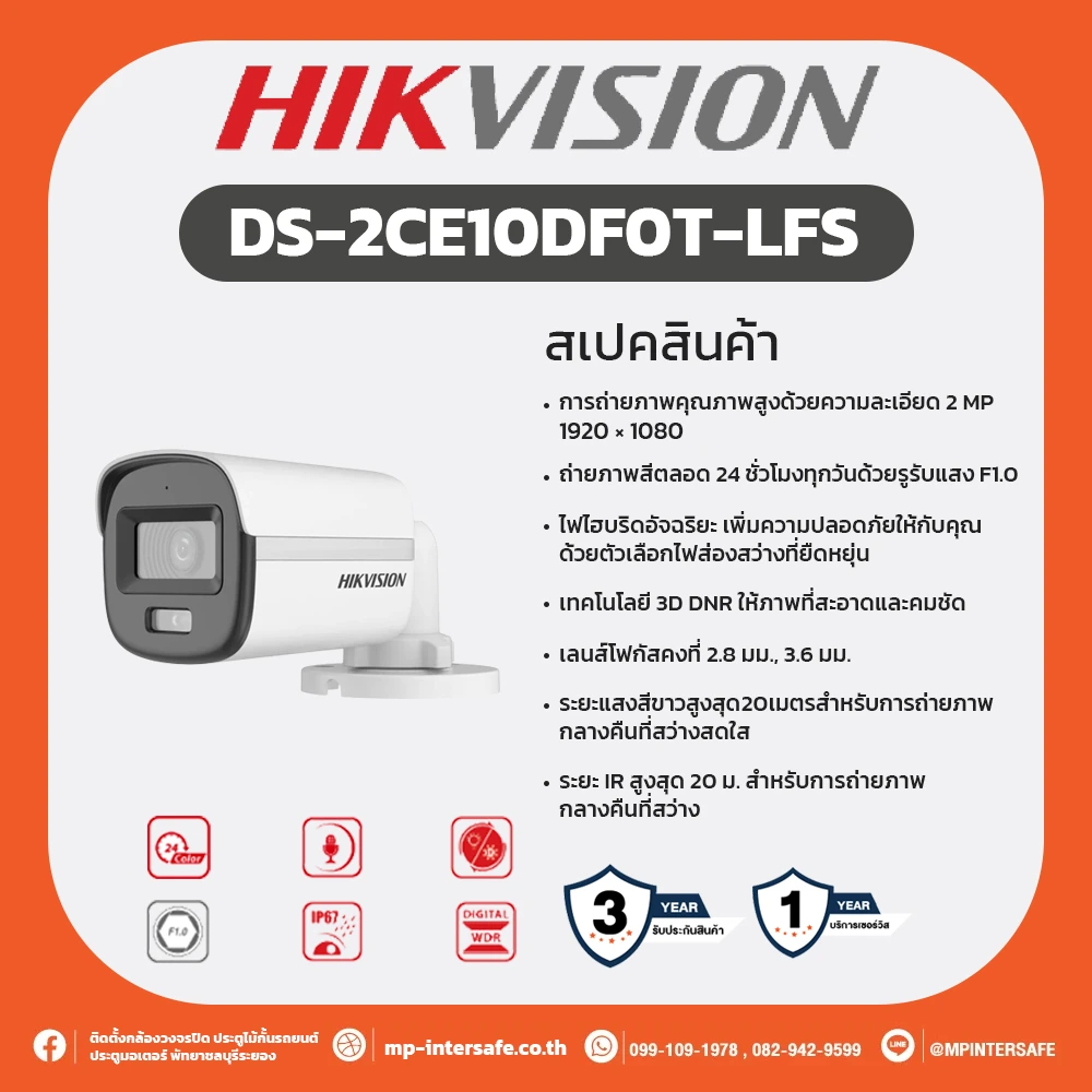 กล้องวงจรปิด Hikvision Analog 2MP รุ่น DS-2CE10DF0T-LFS