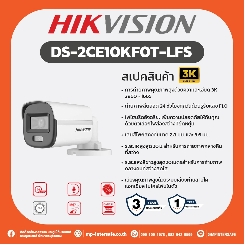 กล้องวงจรปิด Hikvision Analog 5MP รุ่น DS-2CE10KF0T-LFS