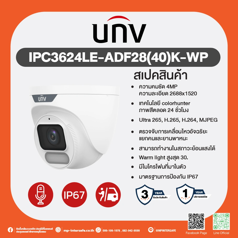 กล้องวงจรปิด UNV IP 4MP รุ่น IPC3624LE-ADF28(40)K-WP